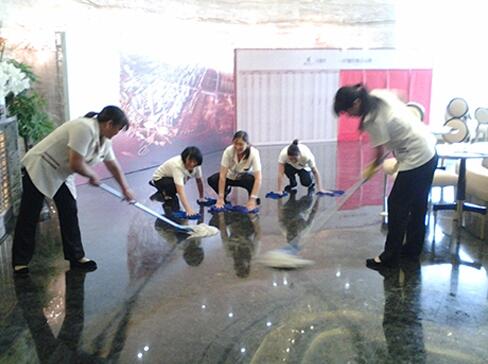 成都辦公室保潔淺談石材清洗方法 1.將石材表層的灰層、雜質清理干凈; 2. 將石材提前潤濕,涂敷于石材表面; 3.按污染的嚴重程度,按1:1到1:5的比例用水稀釋清洗劑; 4. 產品的可工作時間為5-40分鐘,可在表面覆蓋上保鮮膜; 5. 用刷子或者刷地機用力擦洗染污嚴重的部分; 6. 用水****沖洗,如還有未處理干凈的地方,按以上步驟再次處理直至滿意為止; 7.將石材****晾干,用石材防護劑做好防護。 石材清洗劑: 可強力清除硅質天然石材、外露混凝土、卵石混凝板、瓷磚及硬磚上的石灰殘留物,水泥殘留物及薄層,也用于廚房、浴室、游泳池、展館中石材的清洗。有效清除石材及硬表面的污漬、水泥斑、水垢、白華、水痕、黃漬、霉菌,清洗。